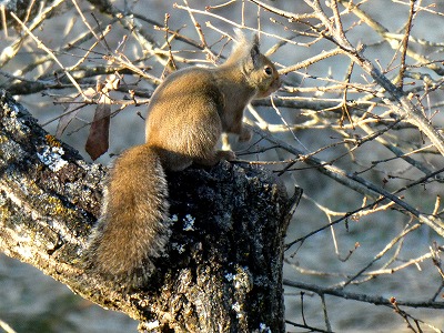 今朝、窓から外を見ると、先を詰めた「コナラ」に「リス」が、10年ぶりくらいに姿を見せました。
