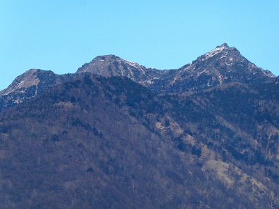 権現岳は雪で白く輝いているときもありますが、今日は暖かく南斜面は雪がありませんでした。、