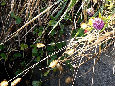 側溝脇に赤詰草ほどの小さな長さの穂がゆれていました。