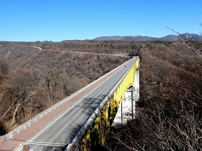 「八ヶ岳高原大橋」の駐車場にクルマを停め、大泉側まで散歩、全長490mの黄色い橋を何時もと違う角度から撮ってみました。