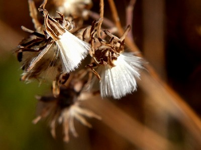 冬の標高1100mには写真になるような植物の被写体は無く、白い冠毛が枯れ茎についていました。