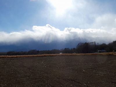 今朝は青空で、家から見えた八ヶ岳の頭は雪を戴き輝いていましたが、午後になって曇ってきました。