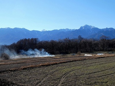 八ヶ岳が見える牧草地は身曾岐神社まで徒歩5分くらい掛りますが、参拝客の臨時駐車場になっていました。