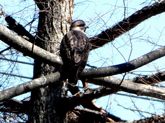 調べてみると「ノスリ」のようです。聴いたことがない名前です。「タカ」の仲間で頭や背中は茶褐色、胸からお腹は白っぽく見えます。主にネズミやモグラ、カエルなど、小動物を主食とするそうです。