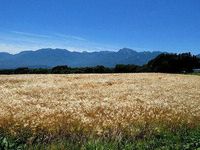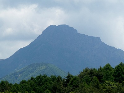 原村から観る八ヶ岳で、ひときは目を引く山は阿弥陀岳(2,805m)で八ヶ岳では3番目の標高です。一番高い赤岳(2,899m)は阿弥陀岳の後方で隠れています。