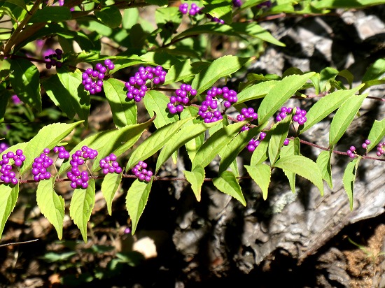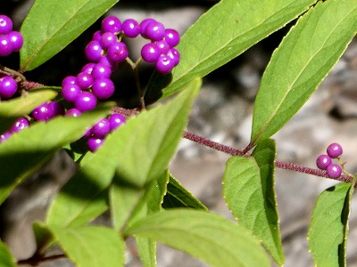 夏には緑色の「エノコログサ」をよく見かけますが、秋も深くなり、紫色の「ムラサキエノコログサ」が多いようです。
