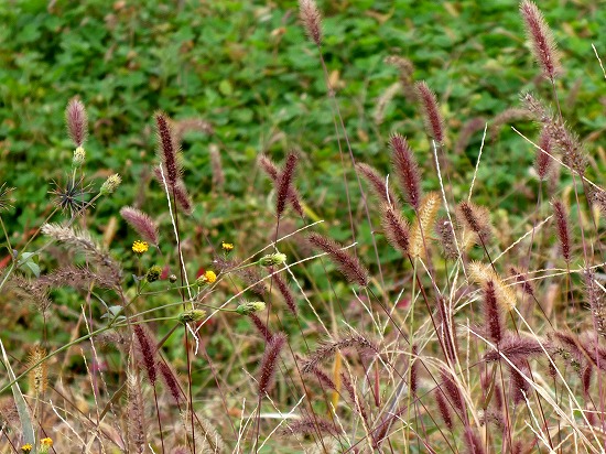 秋も深まり野草の花も少なくなりましたが、畑の端ではブラシのような花穂の「エノコログサ」が、たくさん生えています。