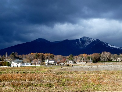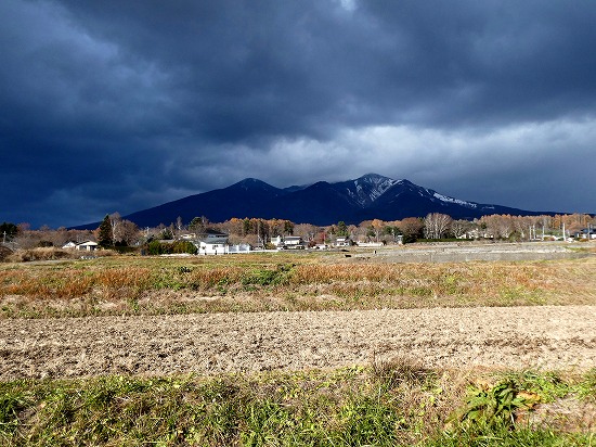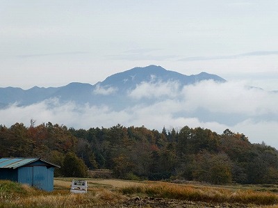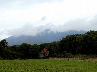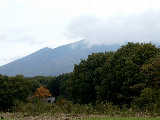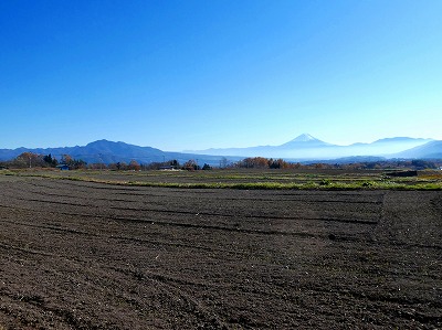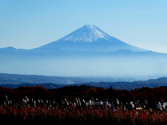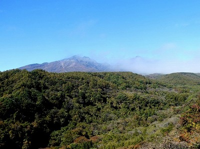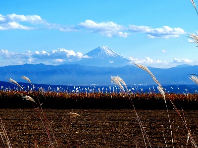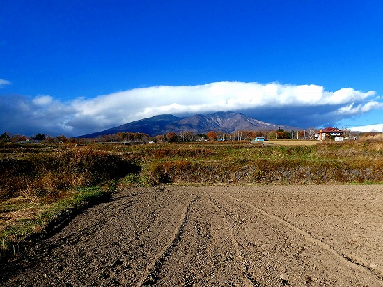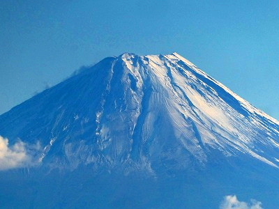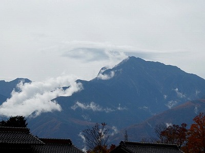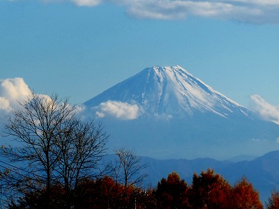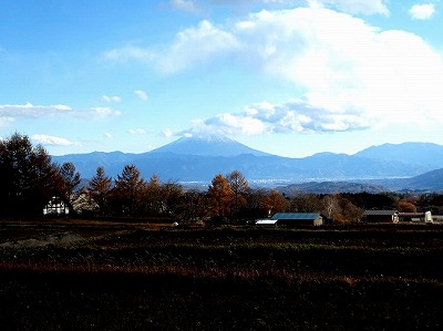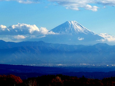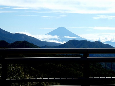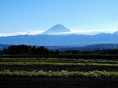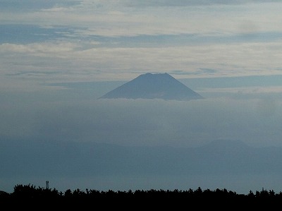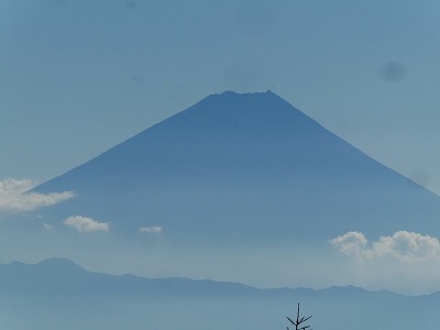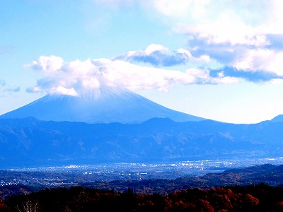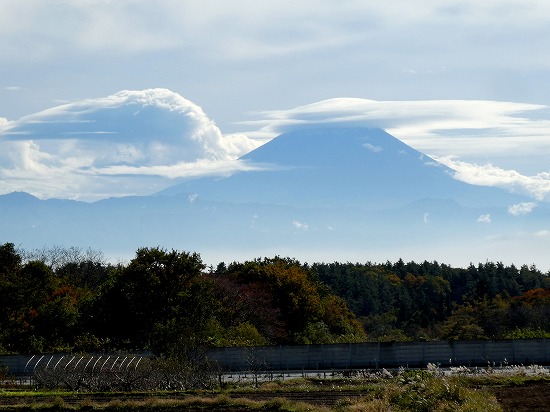見晴らしのよいところに来ると、富士山は笠雲を被っていました。更に左には、わた雲が富士山を引き立てていました。
