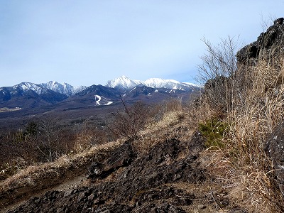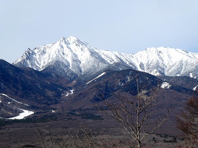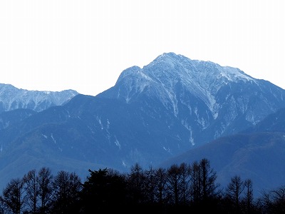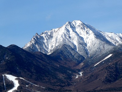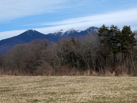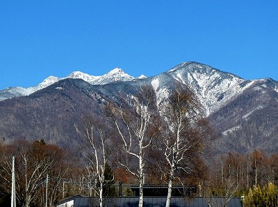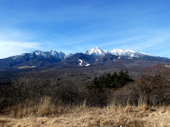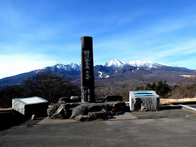 野辺山、平沢峠駐車場から望む八ヶ岳連峰の全貌です。編笠山、権現岳、八ヶ岳の最高峰赤岳、横岳と連なる山々が白銀に輝いていました。
