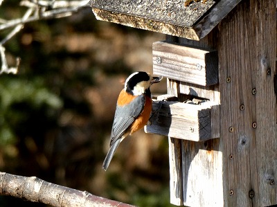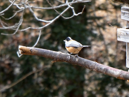 色が少ない冬、ヤマガラのオレンジ色が目立ちます。モノトーンのシジュウカラもよく姿を見せます。