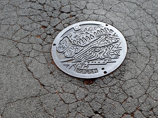 曇り空で撮影素材が無く、ふと下を見ると、長坂町のマンホール蓋がありました。