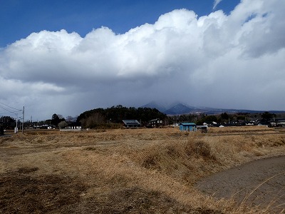 明野町から望む富士山は強風で、雪の起伏がよく見えました。