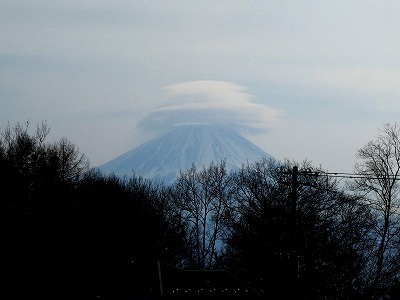 牧草地から富士山の笠雲が見えました。