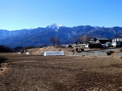 写真は定番の三分一湧水公園下の畑から、冬晴れの山景色を撮ってみました。 |