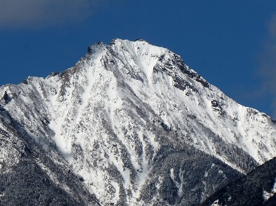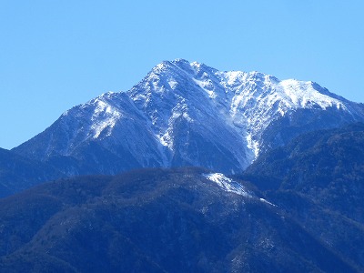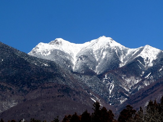 冬の澄み切った青空に甲斐駒、南アルプス連峰は美しい山岳美を見せていました。