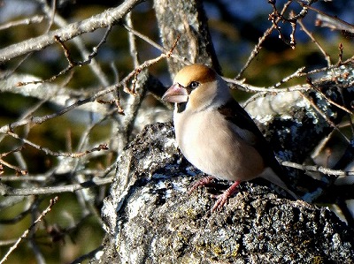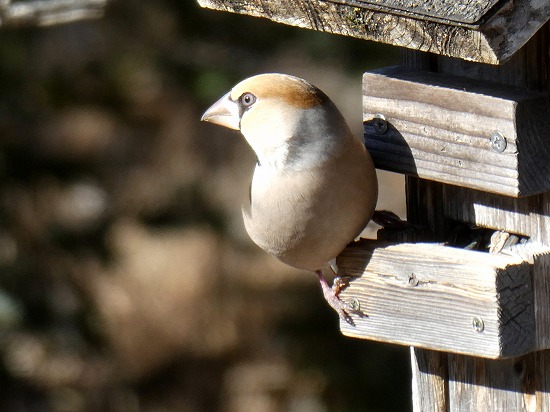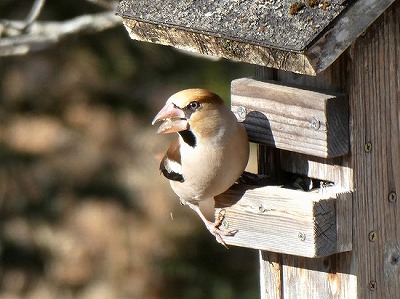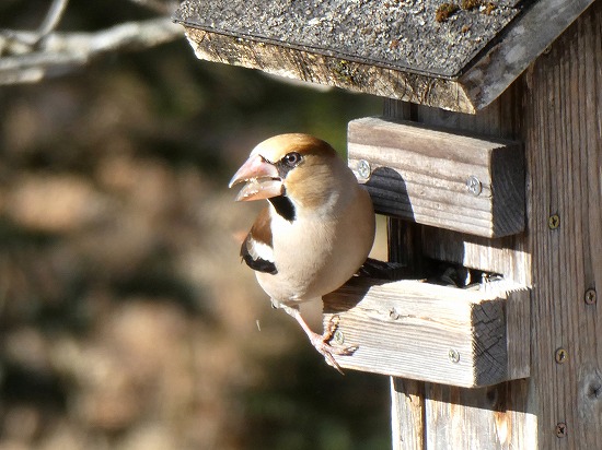 真冬になり、中型で茶色系の「シメ」が、時々姿を見せるようになりました。