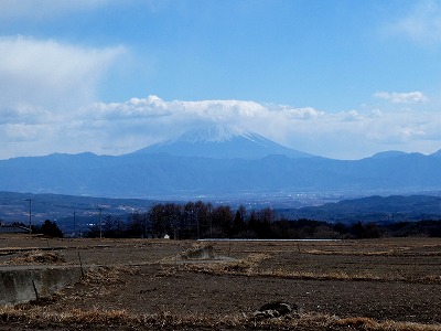 今日の富士山上空は青空にきれいな雲が浮かんでいましたが、北風が強く、畑の散歩は止めて、三分一湧水公園の森に逃げ込みました。