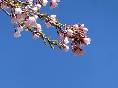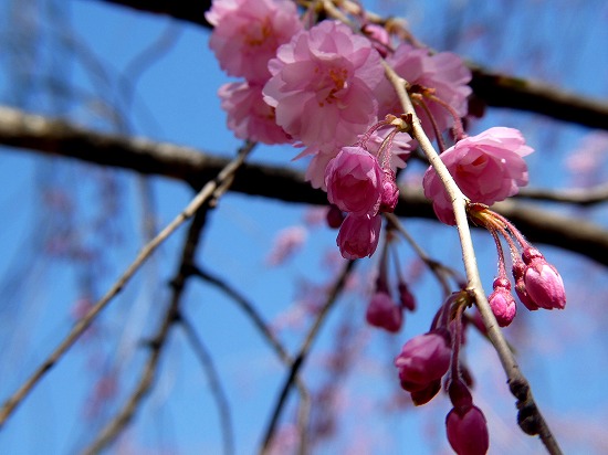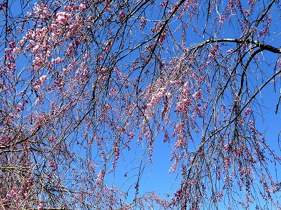 今日は強風で、この時期としては寒く、枝垂れ桜の花は蕾んでしまったのでしょうか? それとも8分咲きでしょうか!