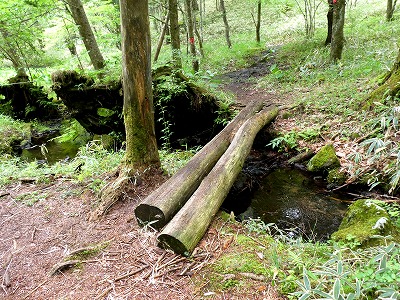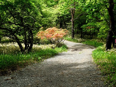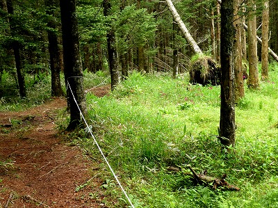 八ヶ岳自然ふれあいセンターから300m、ピンク色のテープに沿って山道を徒歩6分ほど歩いたところに「メコノプシスガーデン」がありました。