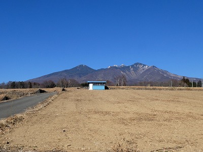 中央道近くの畑からも、存在感ある金峰山が望めました。
